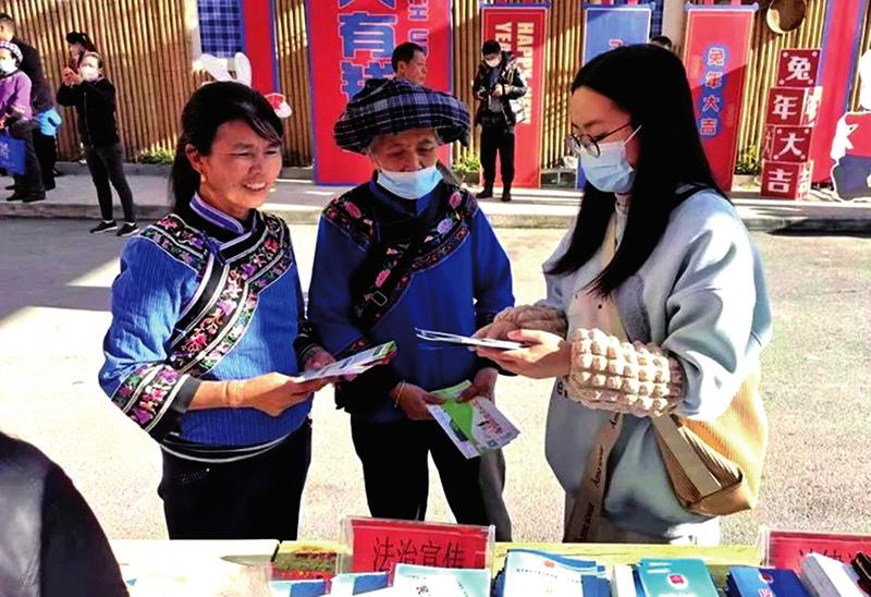 近日,安顺市西秀区司法局深入辖区易地扶贫搬迁安置点彩虹社区文化广场,在当地“春风送岗位·‘职’与你同行”—东西部劳务协作暨安心干专场招聘会上,向安置居民和返乡人员发放普法宣传资料和公共法律服务便民利民联系卡等1000余份,购物袋等宣传礼品300余份,取得了良好的宣传效果。
