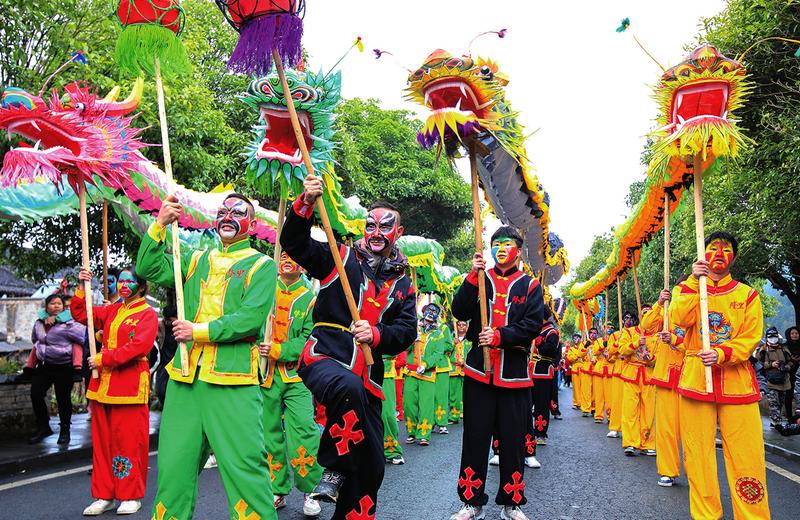2月5日,锦屏县隆里古城举行“花脸龙”传统民俗展演活动,吸引不少游客和市民前来观看。据悉,隆里“花脸龙”迄今已有600多年的历史,是贵州省级非物质文化遗产。舞“花脸龙”时,舞龙队成员脸上用颜色画上五彩脸谱,一条舞动的“花脸龙”就如同一出流动的戏剧。