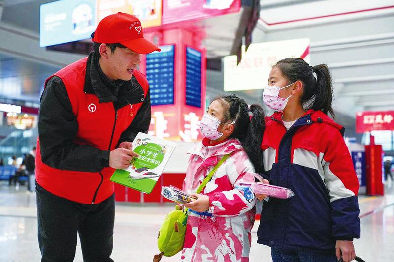 3月5日,由贵阳车站、贵阳车辆段等12家铁路单位组成的25名青年志愿者服务队在贵阳北站开展“学雷锋”活动,为过往旅客提供帮助并宣传铁路安全知识。