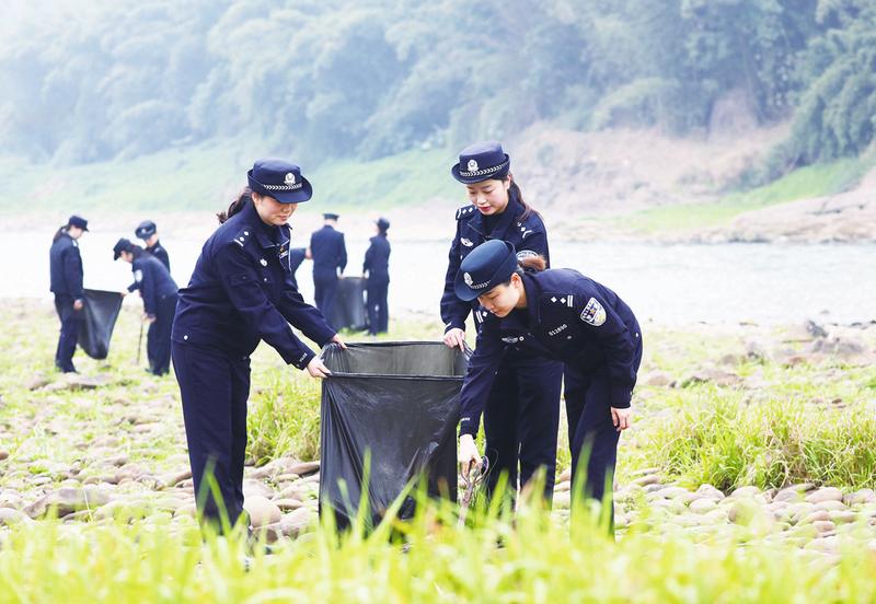 近日,赤水市公安局组织党员民(辅)警开展“学雷锋做先锋党员志愿服务在行动”主题党日活动。民(辅)警带上拾物钳、垃圾袋等工具,来到赤水河金华街道河段对河岸边的塑料袋、塑料瓶、泡沫、皮纸屑等白色垃圾进行清理,以实际行动践行雷锋精神。