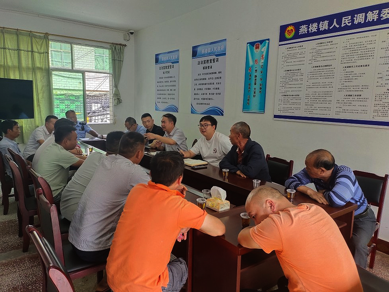 燕楼镇人民调解室内矛盾纠纷双方当事人接受调解。
