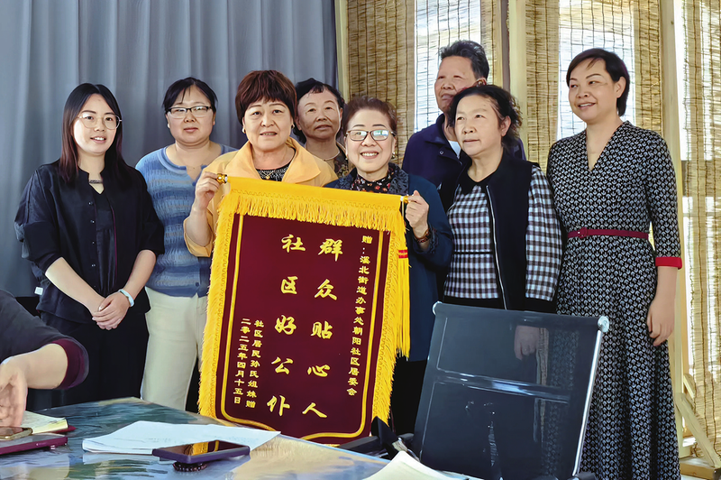 朝阳社区工作人员帮助居民排忧解难获赠锦旗。