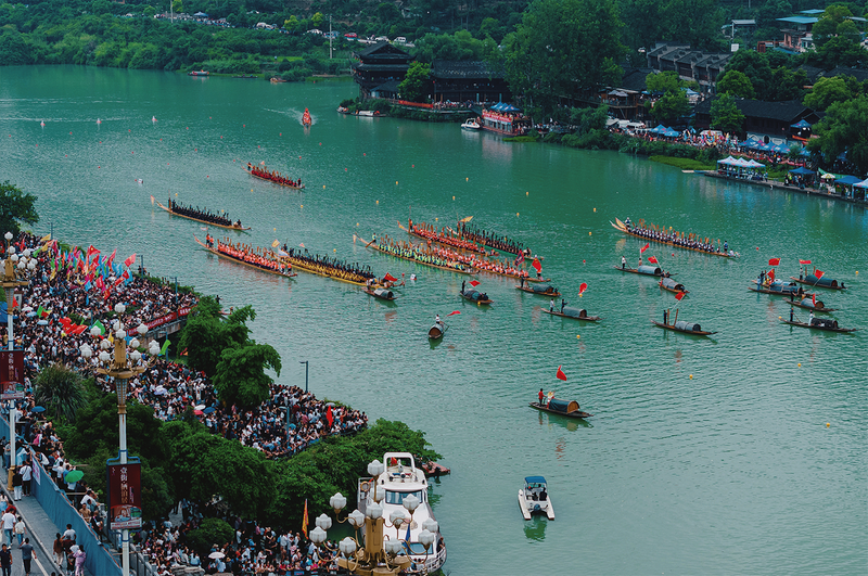 锦江河畔的“中国传统龙舟赛”、公开水域游泳赛等,已成为铜仁市体育旅游的闪亮名片。刺激的桨板比赛、各类“板澡”擂台挑战赛、“狗刨式”游泳擂台赛等丰富多彩的水上赛事活动,吸引了全国各地水上运动爱好者和游客慕名而来,带动了本地餐饮、住宿、购物等相关产业的蓬勃发展,为铜仁的文旅发展注入强大动力。