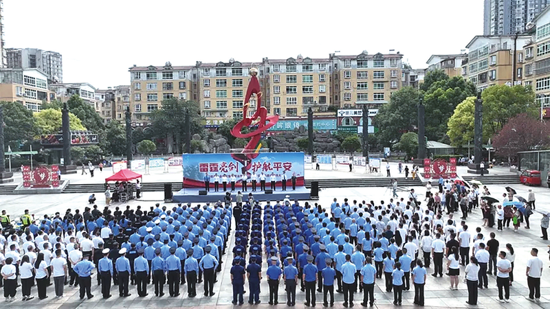 300余名来自清镇市委政法委、法院、检察院、公安局等多部门及各乡镇(街道)的干警、干部组成整齐的方队,以昂扬姿态接受全市人民检阅——9月9日,清镇市“雷霆亮剑·护航平安”社会治安集中整治行动暨平安清镇建设誓师大会在此拉开帷幕。