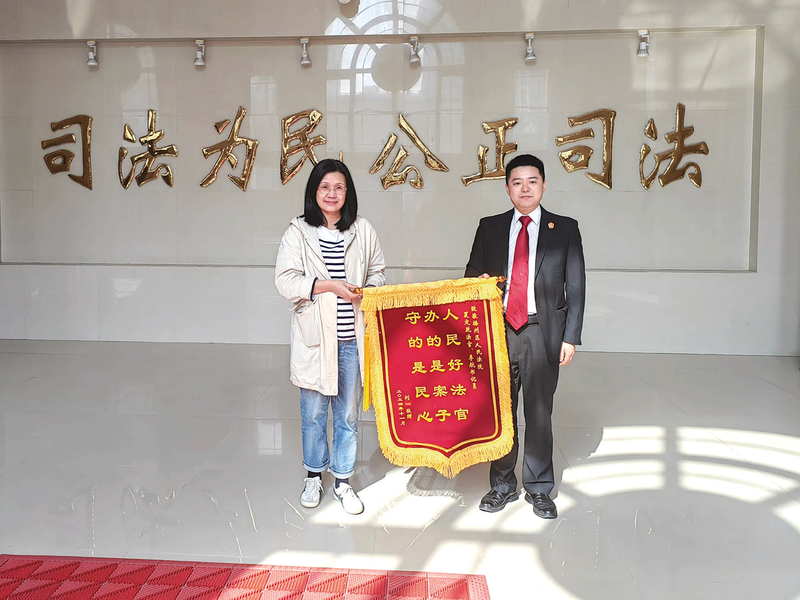 当事人向法官送锦旗表达感谢。 ■记者 杨情丽