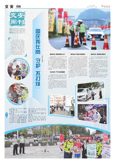 国庆中秋“双节”叠加,全省迎来出行高峰,为保障道路交通安全形势平稳有序,让群众度过平安祥和的假期,全省各地公安交管部门提前谋划、周密部署,全体交警坚守岗位、履职尽责,以“不打烊”的守护,为群众出行保驾护航,为全省经济社会高质量发展营造安全、有序、畅通的道路交通环境。