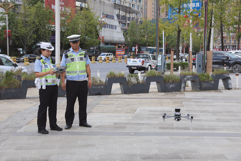 播州交警使用无人机进行空中巡查,提升应急响应速度与管控精度。通讯员 梁立娜 摄