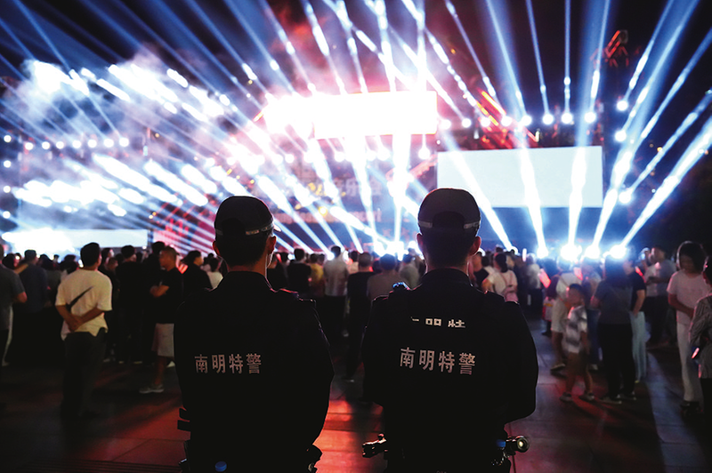 10月11日晚,“黔彩微光乐动未来”路边音乐会在筑城广场热闹开演。为保障活动顺利进行,贵阳市公安局南明分局提前部署,组织民警辅警全程驻守现场,有序疏导交通、维护现场秩序,排查安全隐患,全力守护市民游客的生命财产安全,为这场音乐盛宴筑起安全屏障。