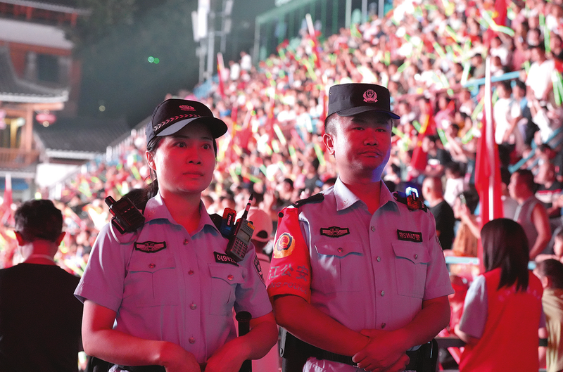 10月12日,大地流彩·2025年全国和美乡村篮球大赛“村BA”总决赛在台江县台盘村激情开赛。台江县公安民辅警与台江交警协同作战,他们在入口引导观众扫码,细致开展现场安检,防止危险物品入场;赛场周边,巡逻警力来回穿梭,及时处置突发状况。多警种全力守护,为赛事的顺利举办筑牢安全防线。