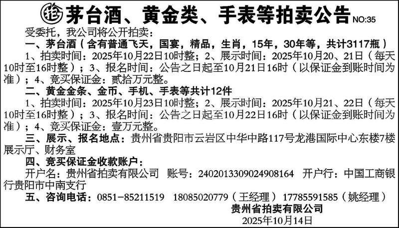 ●贵州酱联酒类运营管理有限公司遗失公章、财务章、法人章(于春洋),声明作废。