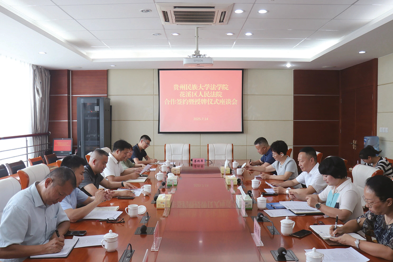 2025年7月,为进一步推动司法实践与法学教育深度融合,共育新时代法治人才,花溪区人民法院与贵州民族大学法学院共建“教学科研实践基地”签约仪式举行,双方相关负责人参会。
