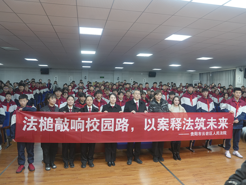 2025年3月,云岩区人民法院联合云岩区教育局、贵阳市第十七中学,在贵阳市第十七中学开展“法槌敲响校园路,以案释法筑未来”活动,让学生们在沉浸式法治实践课中与司法审判亲密接触,在他们心中种下法治的种子。
