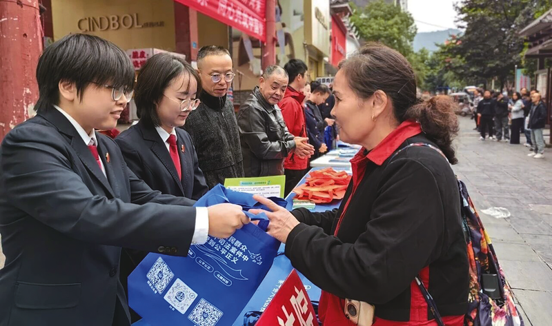 10月22日,黎平县人民法院组织干警参与全县民族团结进步宣传教育活动月集中宣传活动,在县城休闲广场路段设置宣传展台,向过往群众发放民法典等宣传资料。