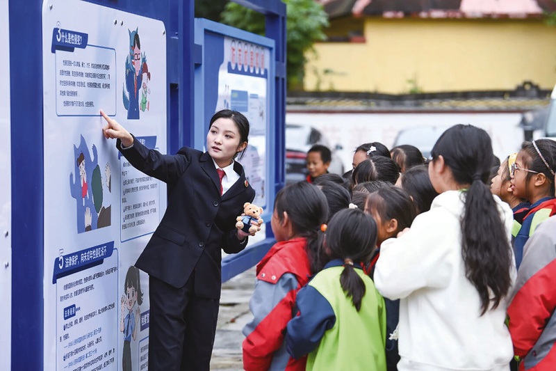 10月20日,在黄平县上塘镇中心小学崭新的“锦绣学堂·黄检有您”普法阵地前,黄平县人民检察院干警充分利用这一互动式法治空间的设施与环境,从禁毒、校园欺凌、预防性侵等方面,为学生们呈现了一堂生动实用的法治课。
