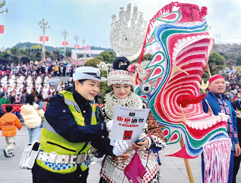 10月25日,“2025年中国农民丰收节村歌大赛总决赛暨民族团结大巡游”活动在剑河县举行,剑河县公安局交警大队深入活动现场,通过设立宣传咨询点、悬挂宣传横幅、摆放交通安全宣传展板等方式向广大群众宣传交通安全知识,提升群众安全防范意识。