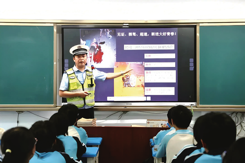 民警为同学们上交通安全宣传课。 ■ 通讯员 张云