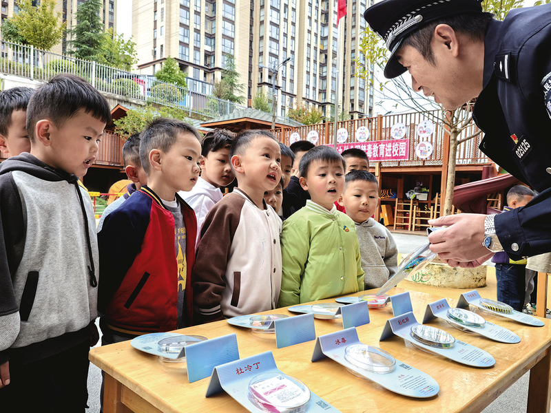近日,赫章县禁毒办到赫章县第九幼儿园开展禁毒宣传教育活动。活动中,民警通过“找不同”“趣味问答”等小游戏,引导小朋友们识别伪装毒品、麻精药品与普通零食、糖果的区别,并教育他们牢记不接陌生人的东西、不跟陌生人走,发现奇怪物品及时告诉老师或家长。
