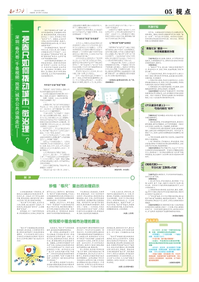 “卷尺哥”短视频中蕴含的城市治理算法,对扩大公民有序参与、完善基层社会治理具有丰富的启示。各地应因地制宜建立健全群众意见建议征集机制,完善科学有效的“金点子”激励体系,形成正向反馈效应,充分调动群众参与的主动性、积极性。愿越来越多市民都向深圳“卷尺哥”、福州龚灿宁学习,树牢主人翁意识,争当基层社会治理的监督者、参与者和推动者,合力打造“人人有责、人人尽责”的基层治理模式,实现人与城市、人与社会的双向奔赴。