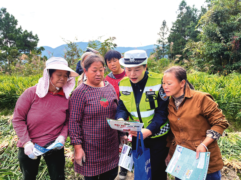 10月29日,剑河县公安局交警大队组织民警辅警走进南加镇新柳村生姜种植基地开展“一老一小”主题交通安全宣传活动,面对面向姜农们讲解交通安全知识,扩大农村交通安全宣传覆盖面,确保交通安全知识走进千家万户。