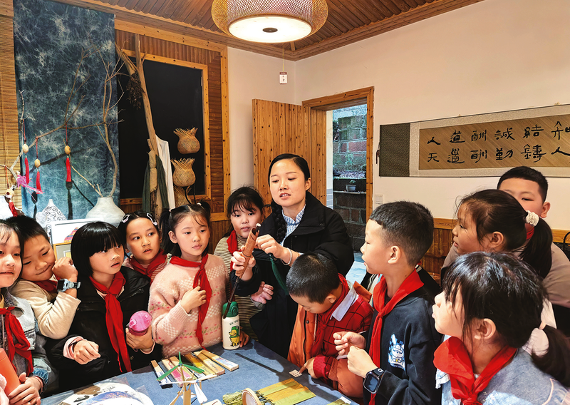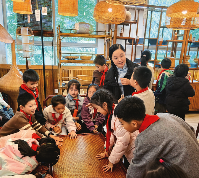 本报讯(通讯员 袁艳 汪霞)11月4日,赤水市第四小学组织学生走进大同镇极竹堂竹编非遗研学基地,开展“走进非遗创新体验”沉浸式实践活动。全国人大代表、赤水竹编省级非遗代表性传承人杨昌芹亲授技艺,让这项承载地方文脉的古老技艺走到孩童手中。