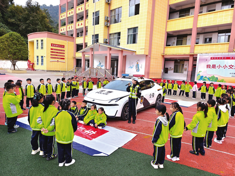 11月5日,从江县公安局交警大队组织民警走进城关一小开展交通安全宣传活动。活动中,民警用通俗易懂的语言向学生普及汽车盲区安全知识。此外,组织学生化身“小小交通安全员”,在校园门口路段进行实践体验,提升学生们的安全防范意识和自我保护能力。