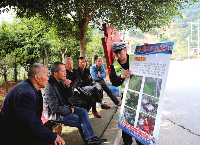 11月7日,榕江县公安局交警大队组织警力走进特和小区,以“暖冬护行,安全到家”为主题开展冬季交通安全宣传活动。活动中,民警辅警结合冬季低温易滑、视线较差的气候特点,通过摆放事故案例展板、发放宣传资料、现场讲解等方式,向群众讲解交通安全知识。