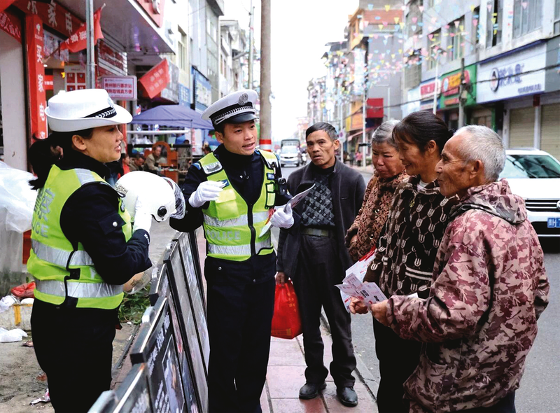 近日,三穗县公安局交警大队组织民警辅警走进桐林镇开展交通安全宣传活动,通过悬挂宣传横幅、摆放宣传展板、发放宣传资料、答题送头盔等方式,向过往群众、摆摊商贩宣传交通安全知识,讲解交通安全法律法规。