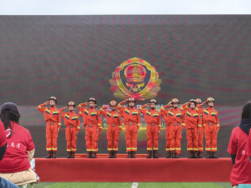 除了比武,现场还开展了消防安全知识有奖问答、观看消防公益宣传片、文艺节目汇演、为高校消防志愿者服务队授旗等活动,气氛十分热烈。