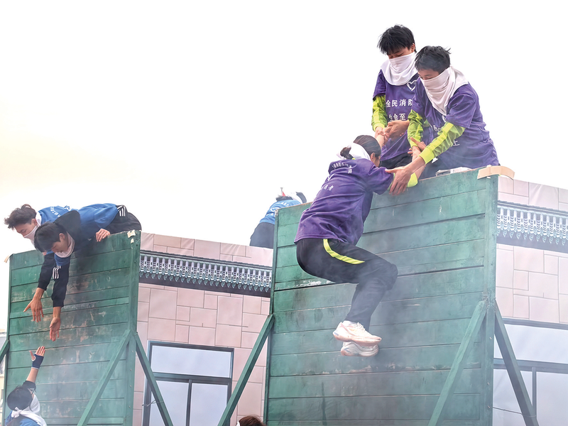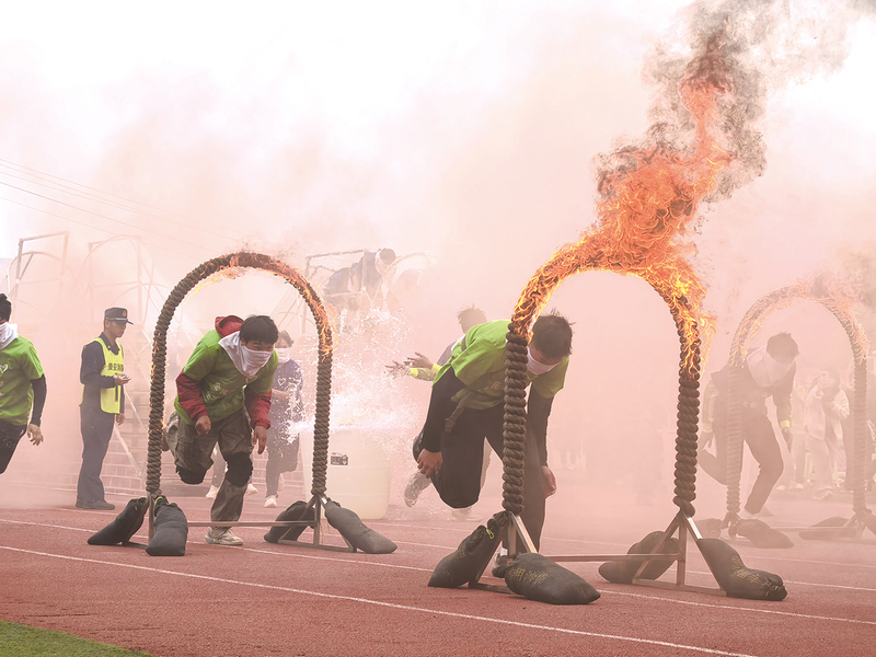 赛场上,参赛队员在裁判员的精准指挥下,以昂扬的斗志奋勇争先。他们分为4组,争分夺秒跨越火海、灵活攀越障碍、精准分辨消防标识、规范操作灭火器。各环节中,队员们配合默契、动作娴熟,用扎实的技能和高效的协作完成各项挑战,出色的表现赢得现场观众阵阵喝彩,充分展现了当代大学生过硬的消防应急素养与团结协作精神。