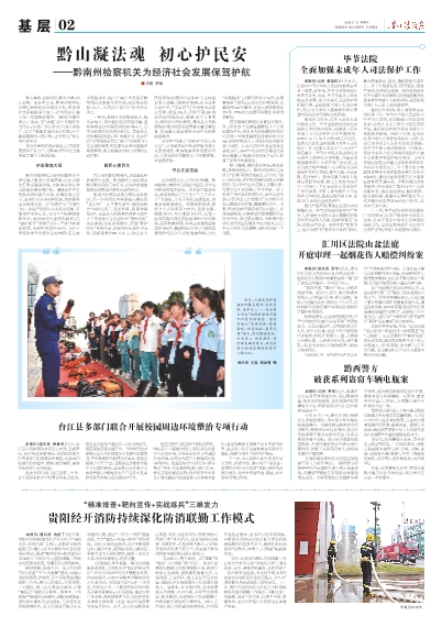 黔南州检察机关始终把检察担当深度融入黔南大发展棋局,以法治微光汇聚成强劲动能,为黔南经济社会高质量发展保驾护航。围绕铸牢中华民族共同体意识主线,统筹发展与安全,重拳打击各类刑事犯罪,精准服务重点领域发展。在“检察护企”专项行动中,依法严惩侵害企业权益犯罪,平等保护市场主体,设立9个检察联络服务站,面对面为企业排忧解难;在“富矿精开”保障行动中,严打涉矿违法犯罪,办理相关案件65件,为矿产资源合理开发筑牢法治屏障;在生态文明建设中,联合开展打击危险废物环境违法犯罪专项行动,起诉相关犯罪134人,用司法手段守护蓝天碧水净土。