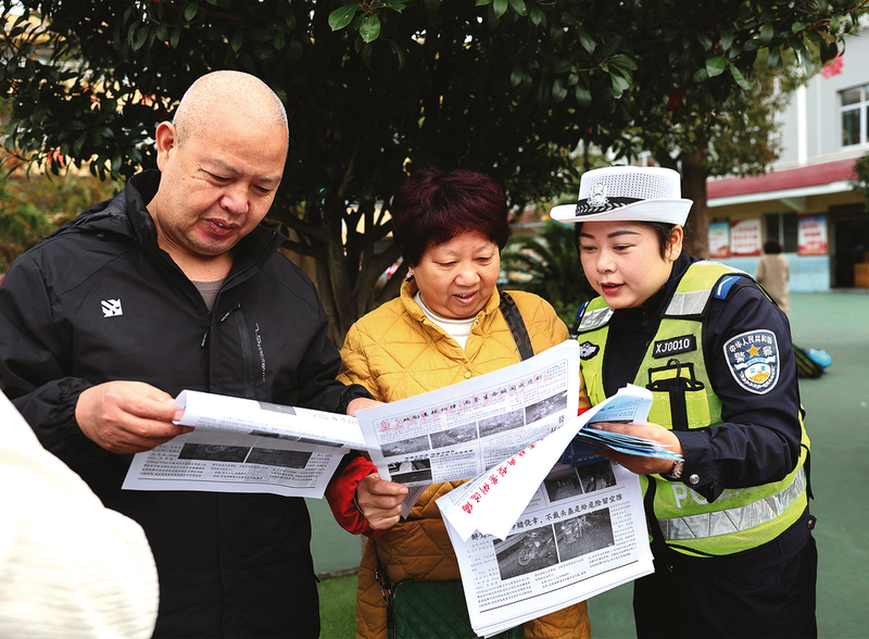 11月12日,天柱县公安局交警大队民警辅警利用县第三小学冬季运动会学生休息期间,通过发放宣传资料、互动问答的形式,向师生、家长讲解交通安全知识,引导学生们自觉遵守交通法规,抵制不文明交通行为。