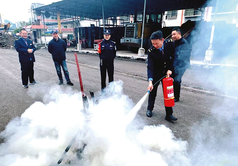 本报讯(记者 何美)近日,遵义车务段桐梓车间联合桐梓铁路公安、物流中心桐梓货运部,开展灭火器规范使用专项消防安全演练,为铁路运输安全筑牢“第一防线”。