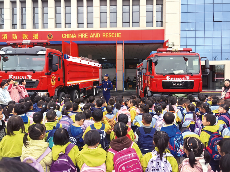 从江县消防救援大队则以“消防站对外开放日”为载体,邀请当地大风车幼儿园的小朋友们走进消防站,开启“零距离”学习之旅。孩子们好奇地触摸消防器材、聆听消防员讲解安全知识,在直观感受与趣味互动中,消防安全意识和自我保护能力得到有效提升。