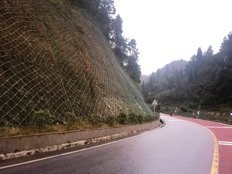 道路急弯已改缓,山体安装了防护网。 ■记者 钱仕豪