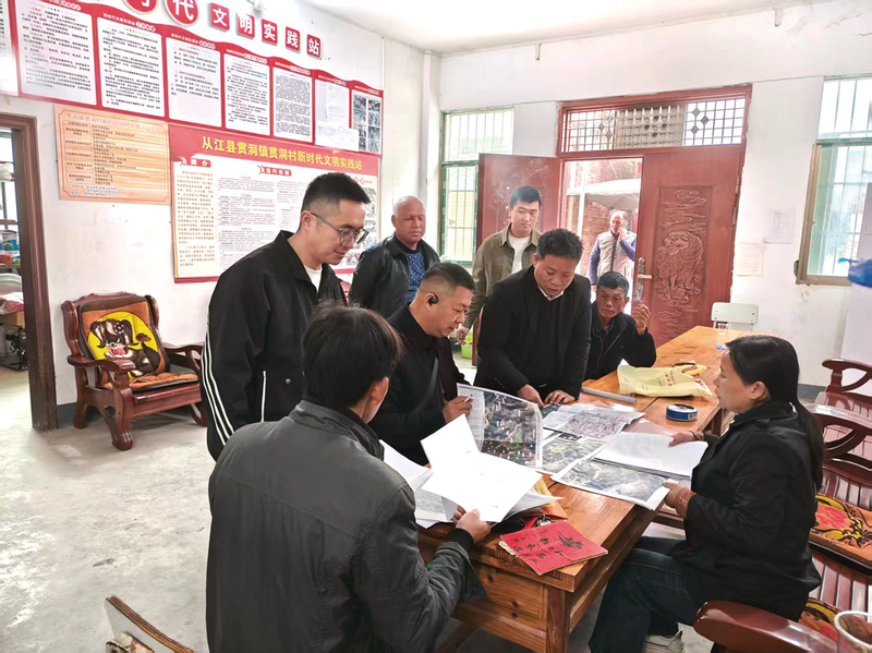 调解过程中,工作人员对照历史耕种记录仔细核实边界范围。