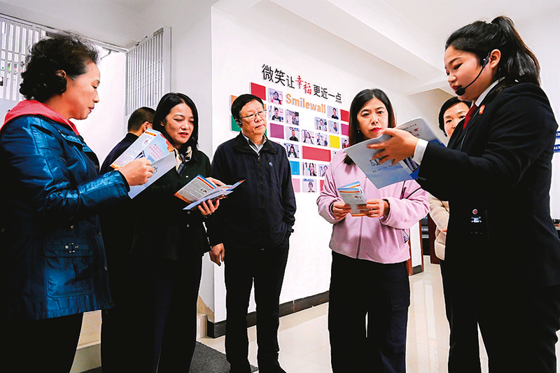 在遵义市播州区人民法院枫香法庭,代表们驻足聆听工作人员讲解。 ■记者 杨情丽