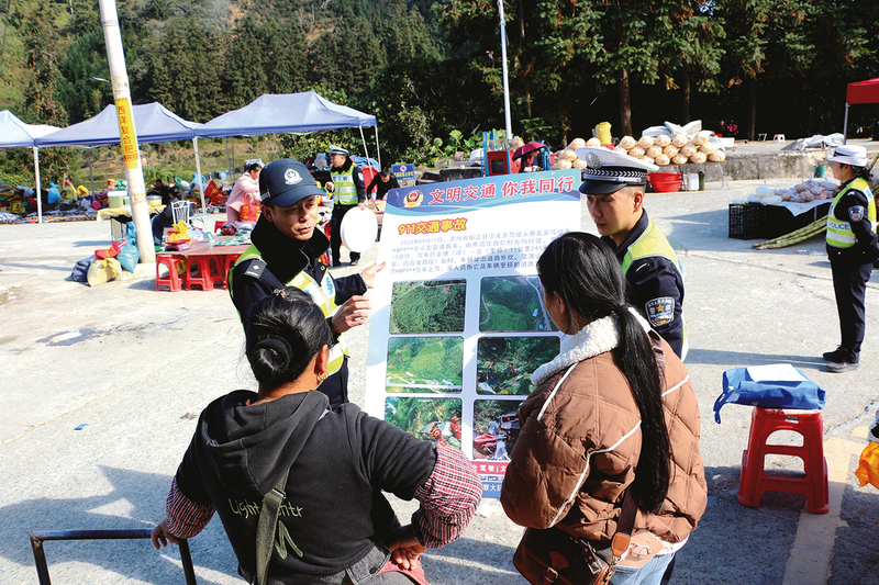 11月21日,榕江县公安局交警大队民警利用平江镇赶集日人流车流集中的有利时机,在辖区集市开展122“全国交通安全日”预热活动,将安全知识送到群众“家门口”。