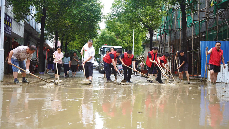 党员干部清扫淤泥。 ■ 通讯员 吴寿静