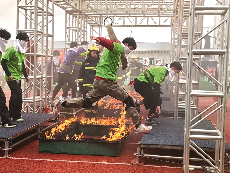 贵州省第九届驻筑大学生消防逃生技能大比武暨消防宣传志愿服务活动激烈比拼现场。