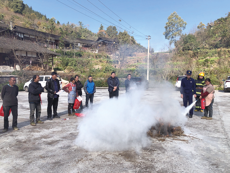 为夯实农村火灾防控基础,筑牢消防安全屏障,黔西南州消防救援支队立足实际,全面启动消防安全“千场培训”大活动,消防人员坚持问题导向,联合基层网格员、消防志愿者深入各乡镇、村寨,讲解安全用火用电用气、初起火灾扑救及火场疏散逃生等关键知识,积极开展培训、演练、宣传等,内容紧密围绕农村常见火灾隐患展开,涵盖电气线路安全规范、秸秆柴草堆放管理、老旧线路隐患排查等重点领域。11月以来,共播放警示教育片300余次,发放宣传资料3万余份,开展消防演练300余次,普及群众1万余人,入户宣传2000余次,发现并整改隐患3000余处。