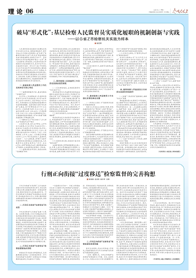 人民监督员工作实质化,是推进检察工作现代化的必然要求,也是践行“以人民为中心”司法理念的关键路径。G省Z市与余庆县的实践表明,只有突破“形式化”困境,才能让人民监督员制度真正成为“规范检察权运行、提升司法公信力”的重要支撑。展望未来,基层检察机关需进一步强化“监督者更要接受监督”的理念,以理论创新引领实践创新,推动人民监督员工作从“有形覆盖”向“有效覆盖”转变,让司法公正更可感、可触、可信,为推进国家治理体系和治理能力现代化贡献检察力量。