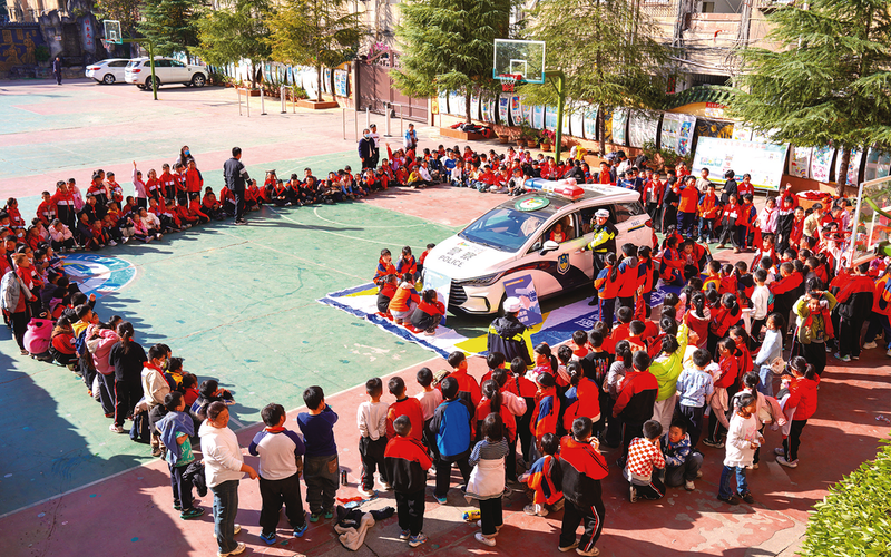 近日,凯里市公安局交警大队组织民警辅警走进市第九小学,开展以“文明交通礼行天下”为主题的交通安全宣传活动,将交通安全知识送到中小学生身边。