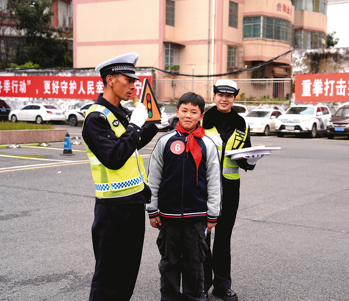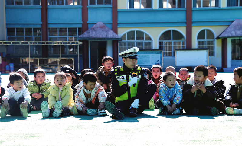 织金县公安局交警大队联合后寨派出所、织金县公安局政工室走进辖区幼儿园,通过趣味问答、情景模拟、互动游戏等形式,为200余名师生送上了一堂生动实用的交通安全启蒙课。 通讯员 杨慧 摄