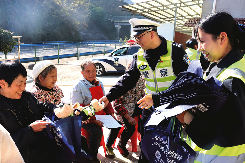 遵义高速交警六大队深入坪乐镇谢家沟村开展“禁止行人上高速”暨“美丽乡村行”主题宣传活动,向村民宣讲行人违法进入高速公路的危害性,提升村民的交通安全意识和自我保护能力。 通讯员 苟子清 摄