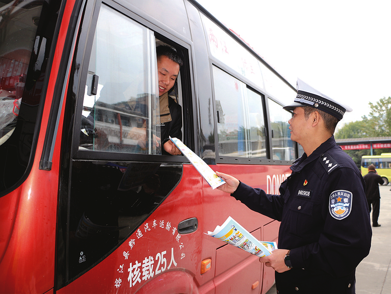 在榕江县汽车站,宣传人员通过案例讲解、资料发放、现场咨询等形式,切实提升司乘人员及过往群众的交通安全意识与自我防护能力。 通讯员 何立波 郑德高 摄