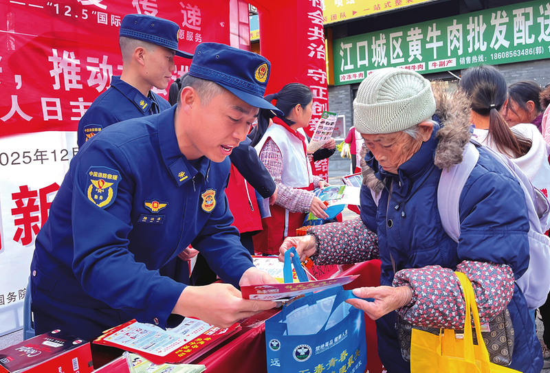 近日,江口县消防救援大队联合民政、市场监管等部门开展“12·5国际志愿者日”主题志愿服务宣传活动。消防宣传人员通过设立咨询台、发放宣传资料、现场讲解等形式,向群众普及消防安全知识。