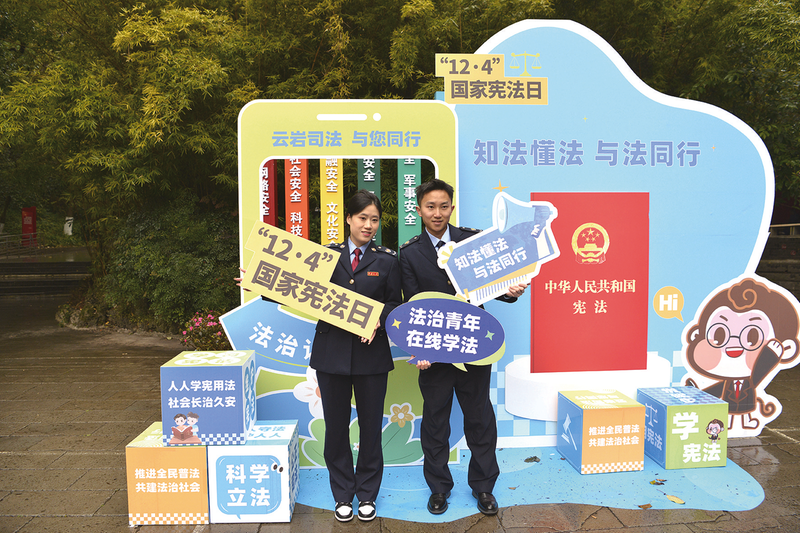 税务工作人员在“网红点”开展普法宣传。 本报讯(记者 张斌 牟岚)为深入学习贯彻习近平法治思想,大力弘扬宪法精神,近日,由云岩区人大常委会、区委宣传部、区委政法委、区司法局联合主办的2025年“宪法宣传日”活动,在贵阳市黔灵山公园国家安全教育主题广场成功举行。