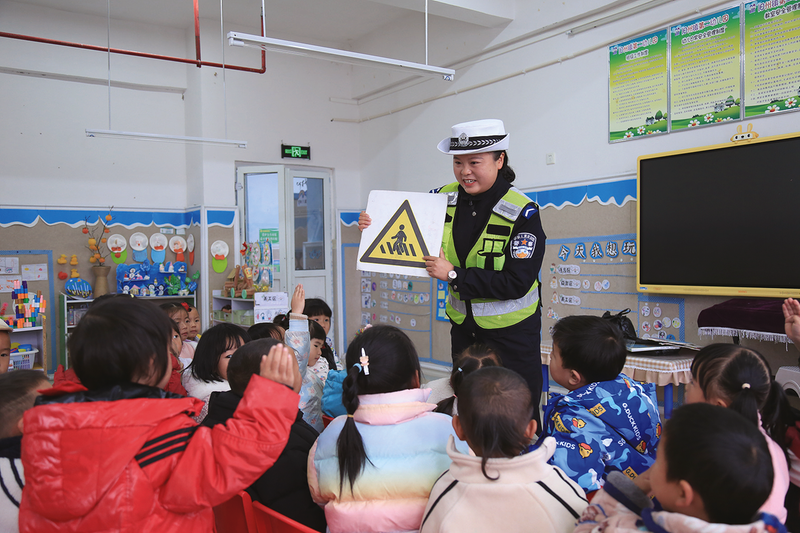 近日,黄平县公安局交警大队民警走进旧州镇第二幼儿园,开展冬季交通安全宣传活动,通过讲解安全行走及乘车等基本知识,提升孩子们的安全防范意识。