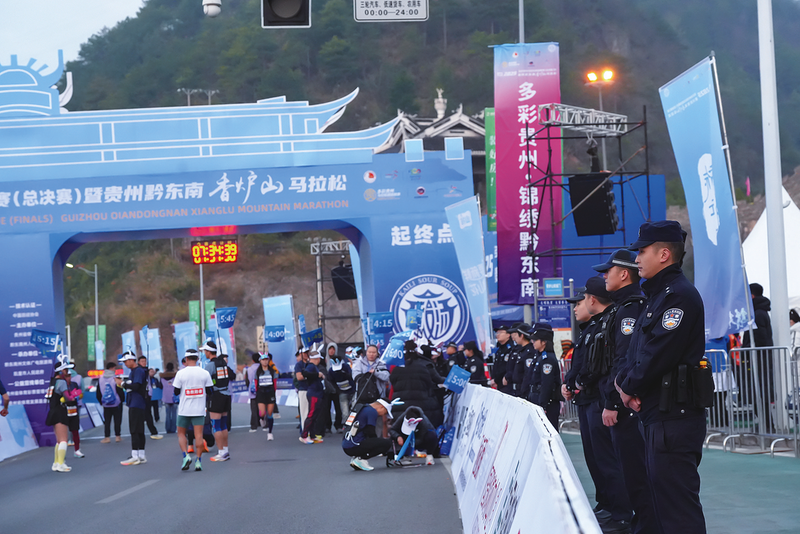 12月14日,2025多彩贵州马拉松超级联赛(总决赛)暨贵州黔东南香炉山马拉松在凯里鸣枪开跑,万余名跑者参赛。为确保赛事安全有序,黔东南公安、交警提前发布交通管制通告,实施梯次管控与绕行引导。沿途设21个医疗点、60台AED设备,超1700名志愿者全程服务,全力护航赛事顺利进行。