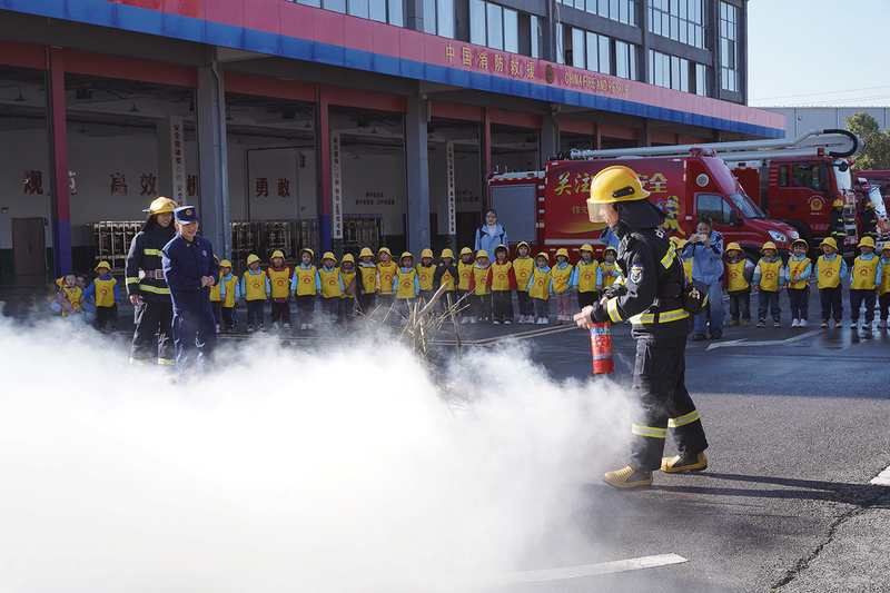 近日,修文县世纪红湖幼儿园组织师生走进修文县消防救援大队,开展“零距离学消防”实践活动,70余名萌娃在互动体验中学习了解消防安全知识。
